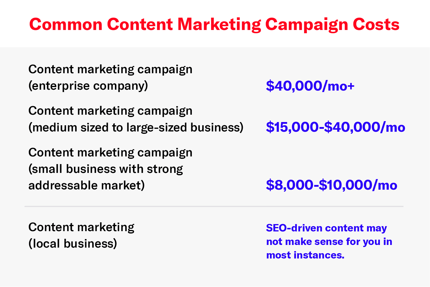 Take this screenshot below, as an example, that talks about the total cost of a content marketing campaign.